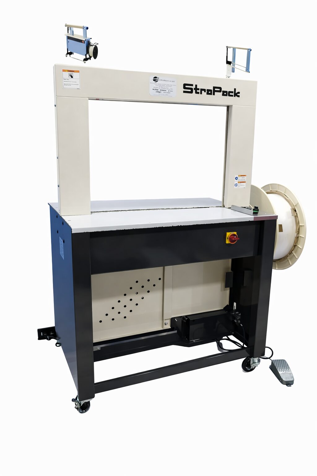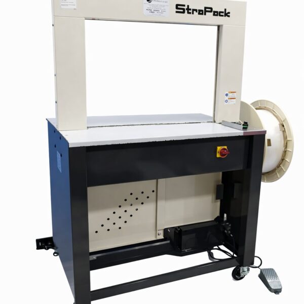 eficiente y confiable para procesos industriales de embalaje y aseguramiento de carga, única en el mundo que zuncha con tres (3) medidas de zuncho solamente con ajustar las guías de la máquina. Tecnología Japonesa.